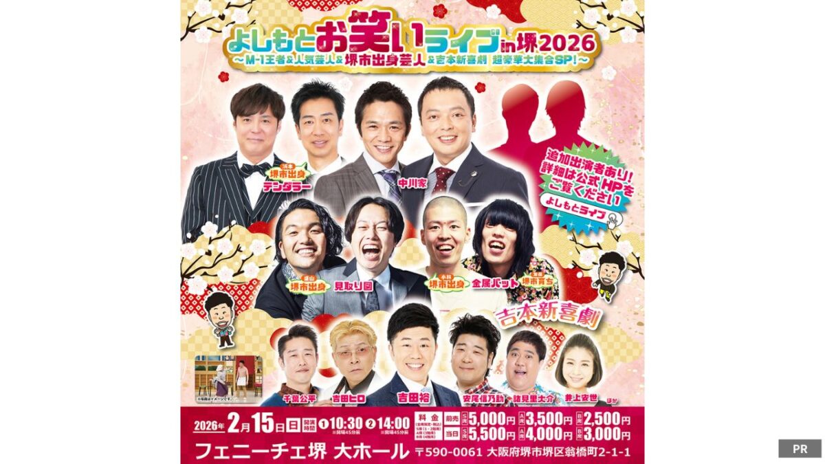 堺市でしか観られない!地元出身のスター芸人たちが大集結! お笑いファン待望の超豪華ライブ「よしもとお笑いライブ in 堺2026 〜M-1王者&人気芸人&堺市 […]