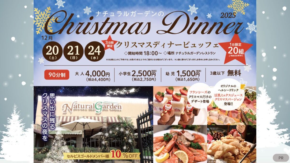 今年のクリスマスは、ナチュラルガーデンで特別なひとときを♪ 2025年12月20日(土)・21日(日)・24日(水)の3日間限定で、「クリスマスディナービュッフ […]