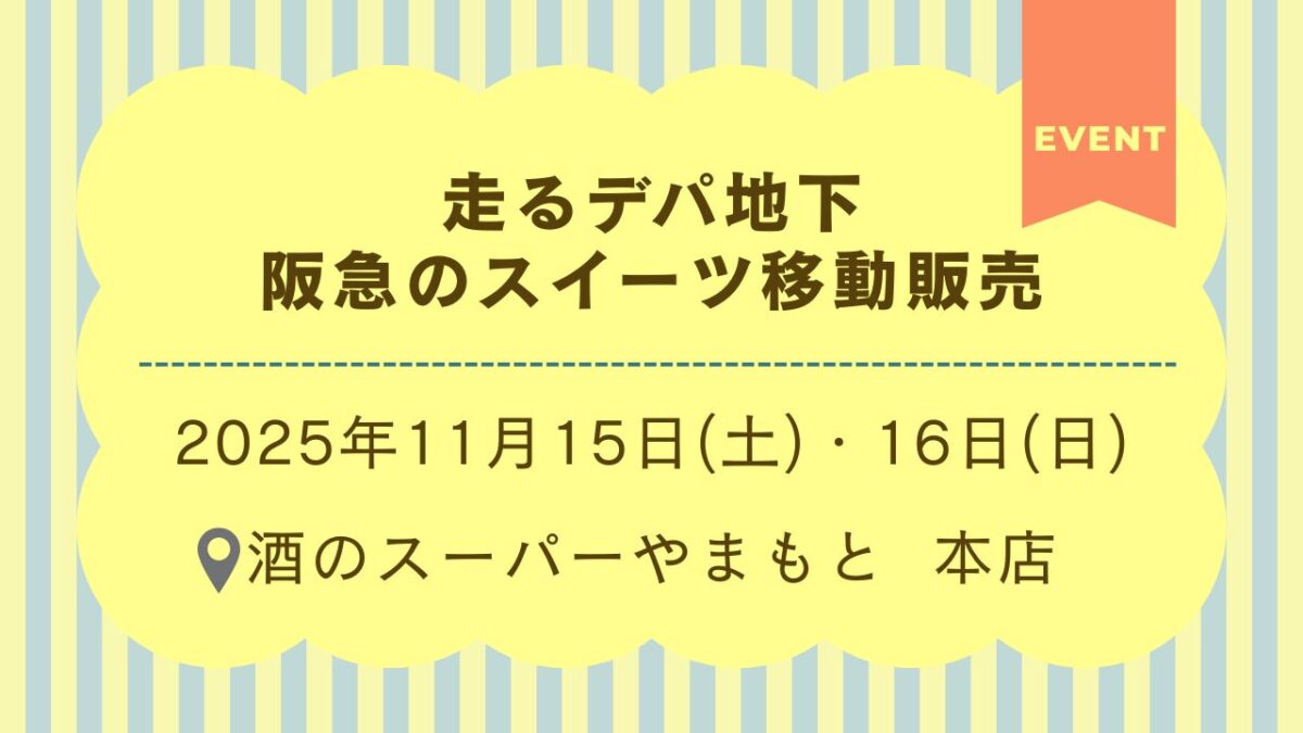 週末のイベント情報です! 走るデパ地下 阪急のスイーツ移動販売が、2025年11月15日(土)・16日(日)の二日間、酒のスーパーやまもと本店にやってきます! […]
