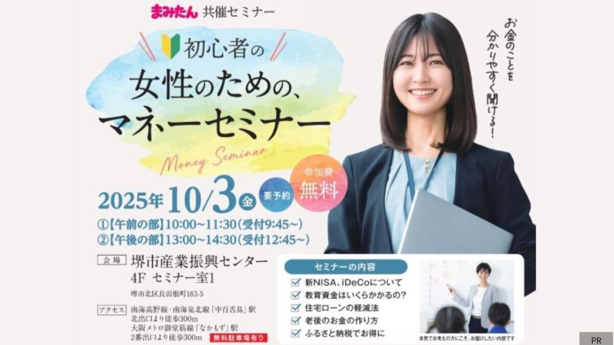 2025年10月3日(金)に、「堺市北区堺市産業振興センター」にて、【初心者の女性のためのマネーセミナー】が開催されます! 気になるお金のことを分かりやすく聞け […]