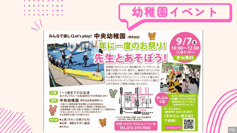 【9月7日(土)堺市北区】年に一度のお祭り!先生とあそぼう!in中央幼稚園