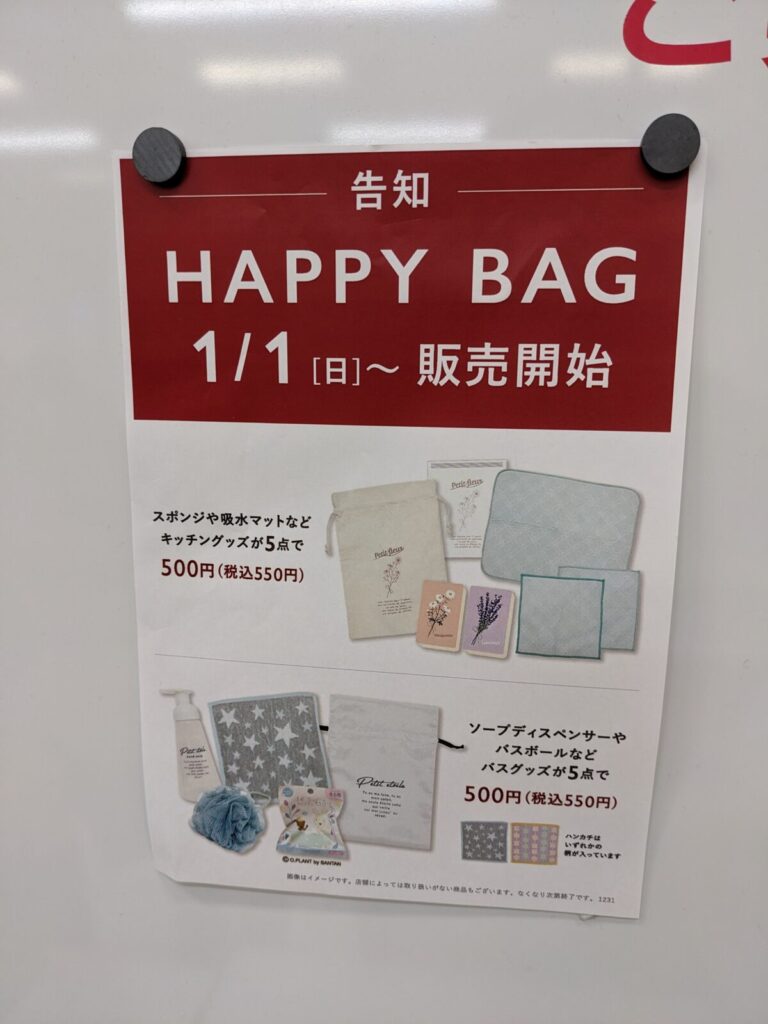 1/1(日)~HAPPY BAGが販売されるみたいです!
