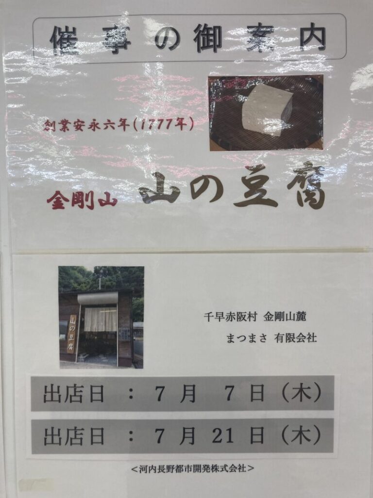 またまた、金剛山の銘水で作られているあの「山の豆腐」がノバティーながの北館にて、
