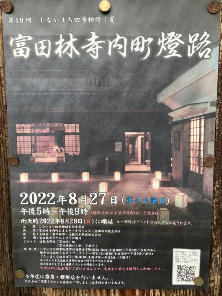 富田林寺内町、その周辺にて「富田林寺内町燈路」が3年ぶりの開催です!!