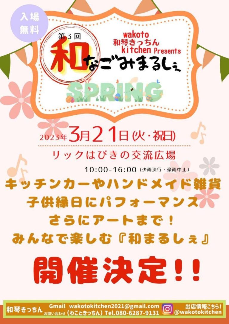 羽曳野市「リックはびきの交流広場」で第3回『和なごみまるしぇ』が開催されます!