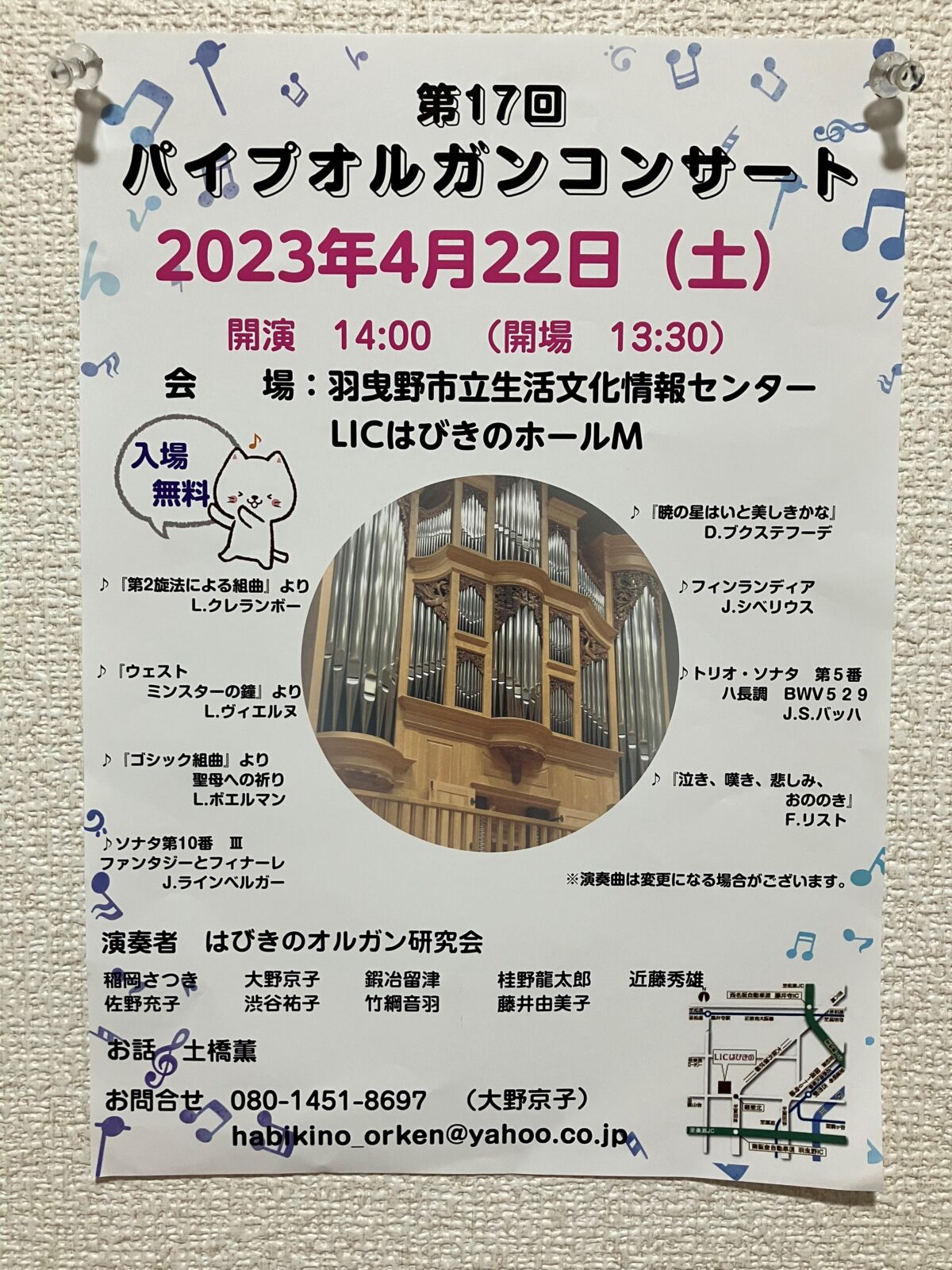 羽曳野市・LICはびきので『第17回 パイプオルガンコンサート』が開催されます。