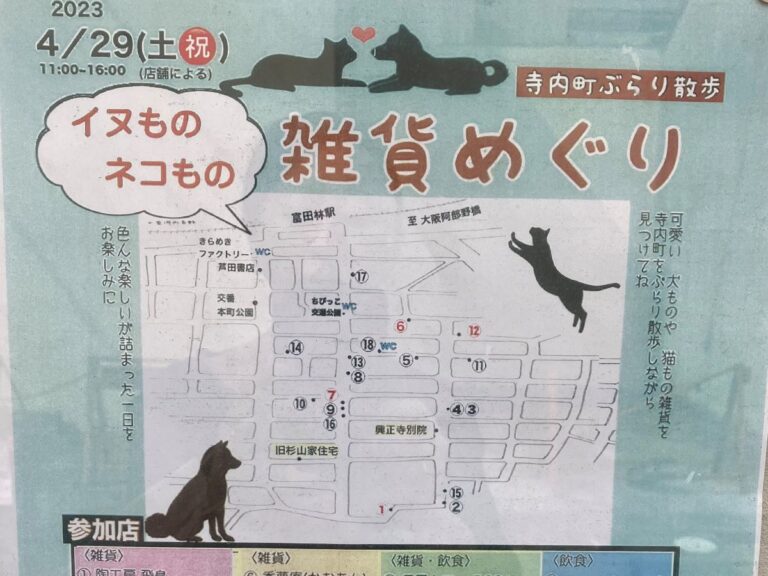 富田林市寺内町で 『イヌものネコもの雑貨めぐり』が開催されます。