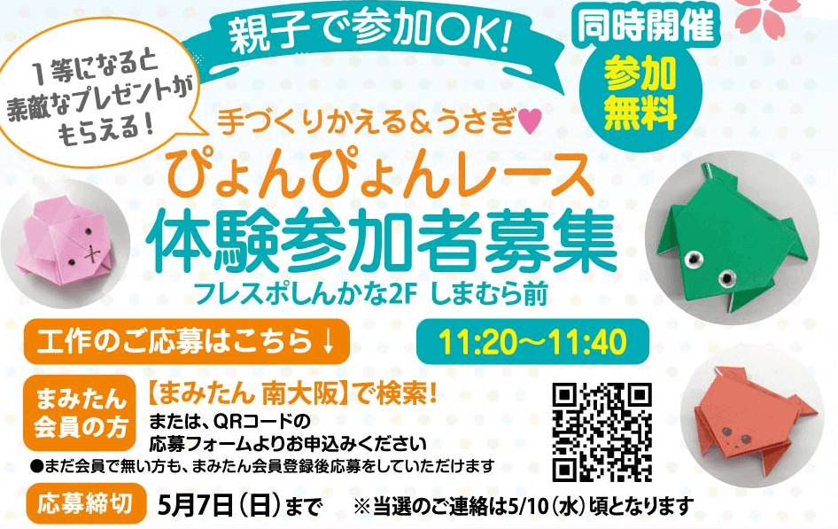 手づくりかえる&うさぎ❤ぴょんぴょんレース体験参加しませんか?