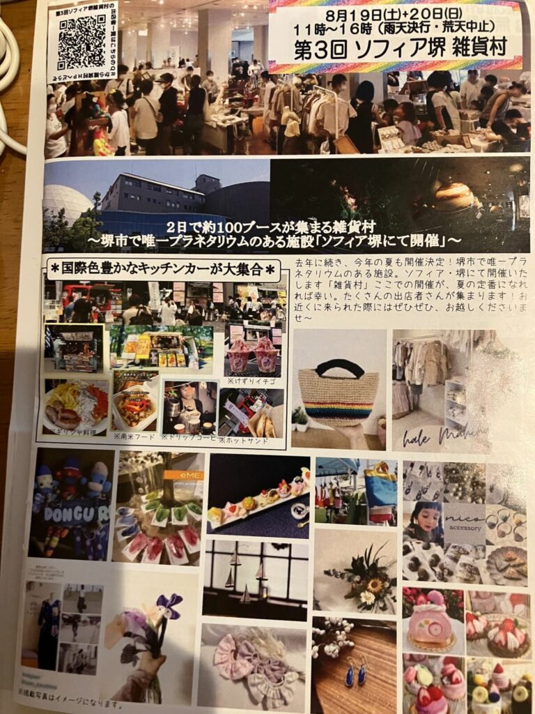 今年の夏も!!『ソフィア堺 雑貨村』が8/19(土)・20(日)の2日間開催されます~♫
