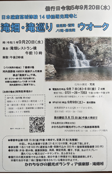 9月20日(水)に『滝畑・滝巡りウォーク』が開催されます♪