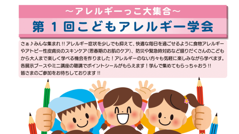 アレルギー症状を少しでも抑えて快適な毎日を過ごせるよう、ケア方法などが気軽に楽しく学べる、こどもアレルギー学会が10月7日(土)、SAYAKAホールにて開催されます!!