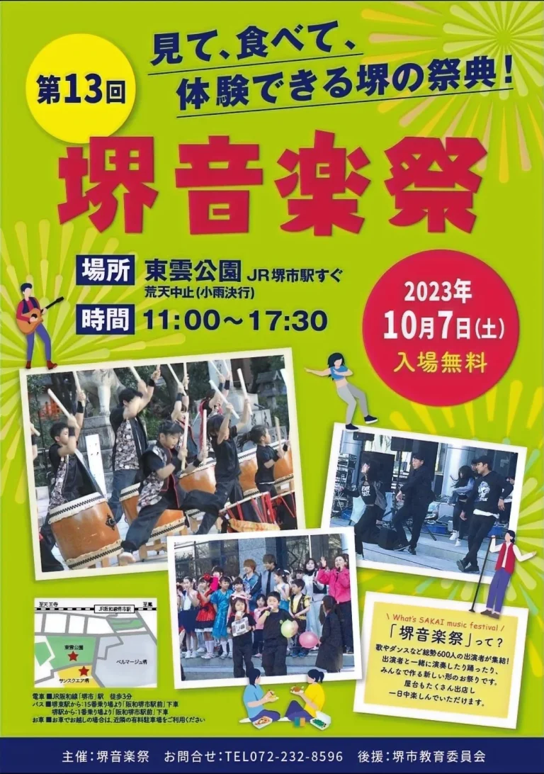 2023年10月7日(土)にJR堺市駅近くの東雲公園が舞台になり、『堺音楽祭』が開催されます。