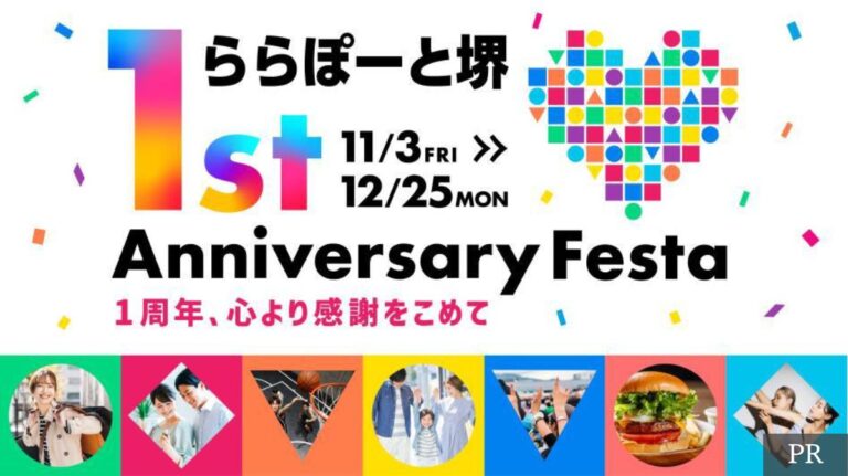 今回はオープン1周年を記念して、11/3(金・祝)~12/25(月)の間『ららぽーと堺 1st Anniversary Festa』が開催されます!