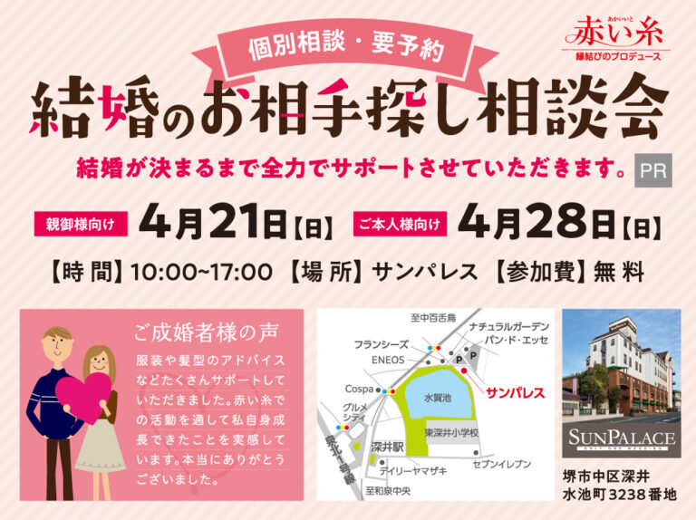堺市中区の結婚相談所「赤い糸」にて開催される相談会のご案内です。