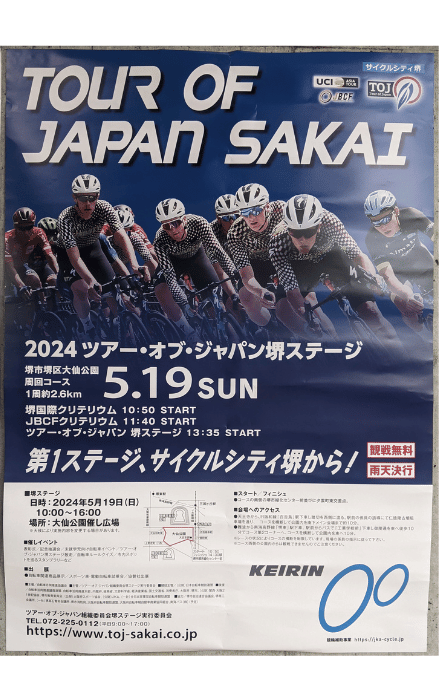 2024年5月19日(日)から26日まで日本を舞台に行われる自転車競技レース大会「ツアーオブジャパン」の第1ステージが堺市堺区にある大仙公園周辺で行われます。