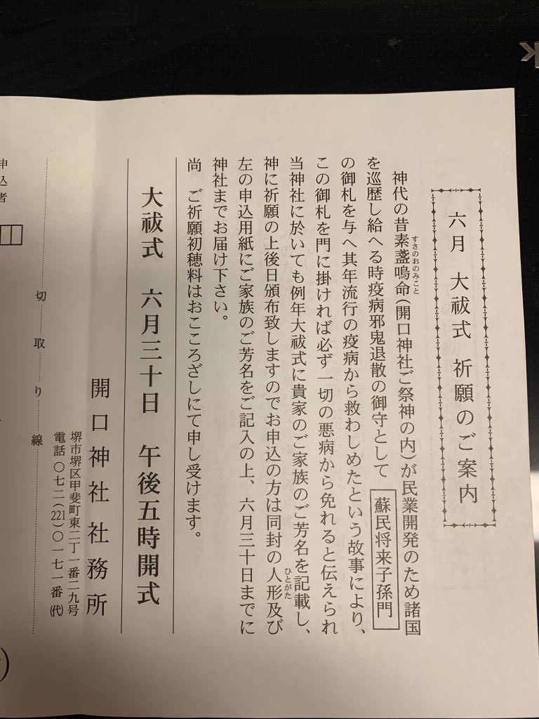 6月30日(日)に開口神社で『大祓式 茅の輪くぐり~』が行われますよ!