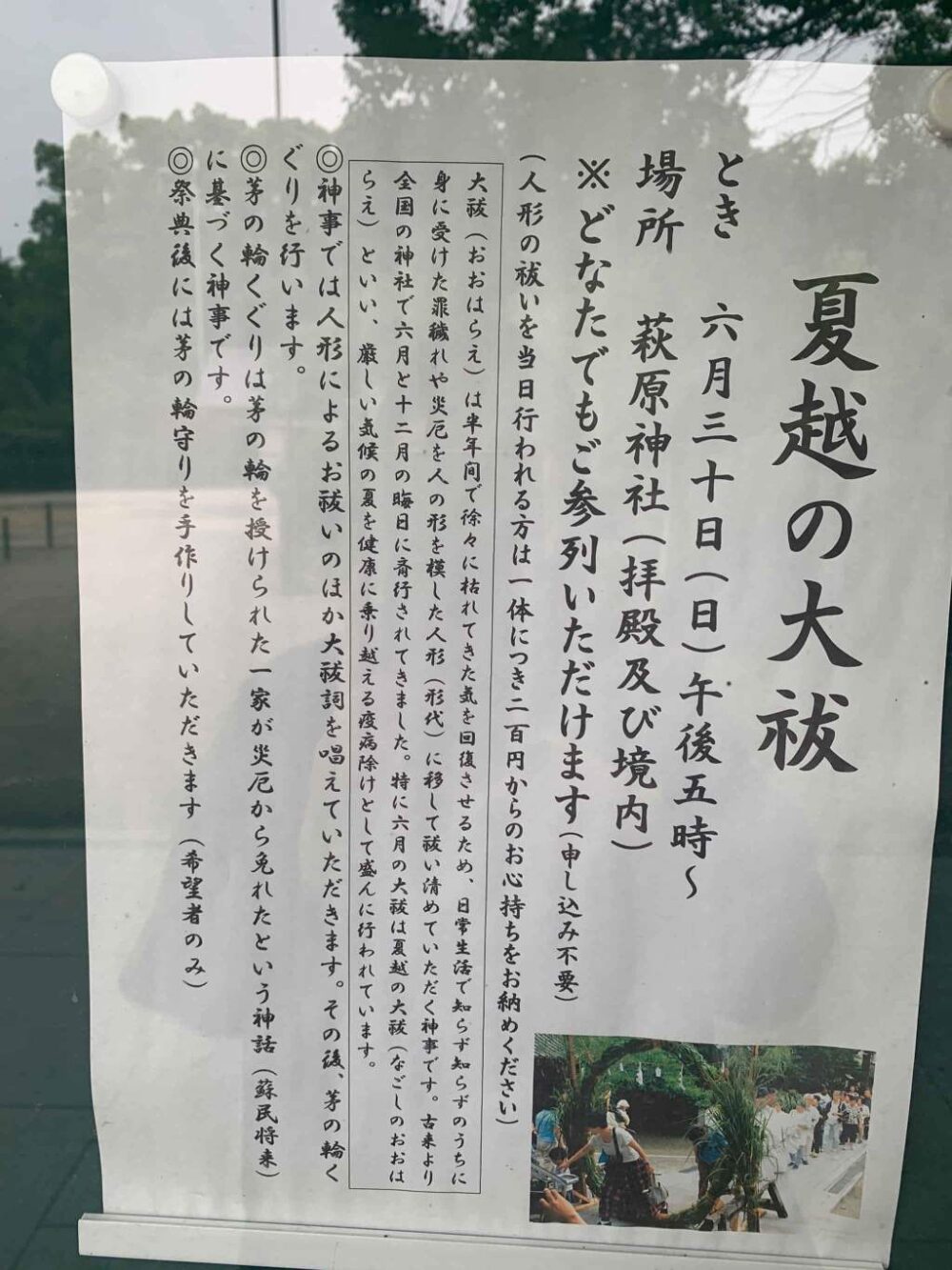 6月30日(日)に萩原神社で『夏越大祓祭』が行われますよ!