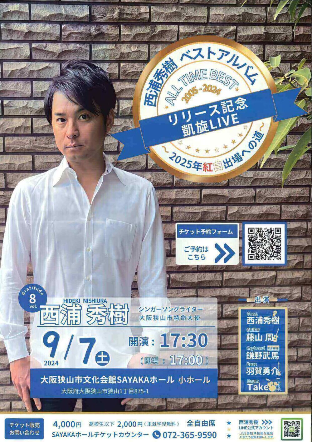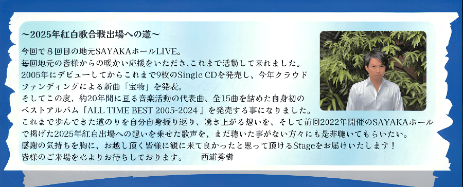 シンガーソングライターで、大阪狭山市特命大使の西浦秀樹さんの凱旋ライブが