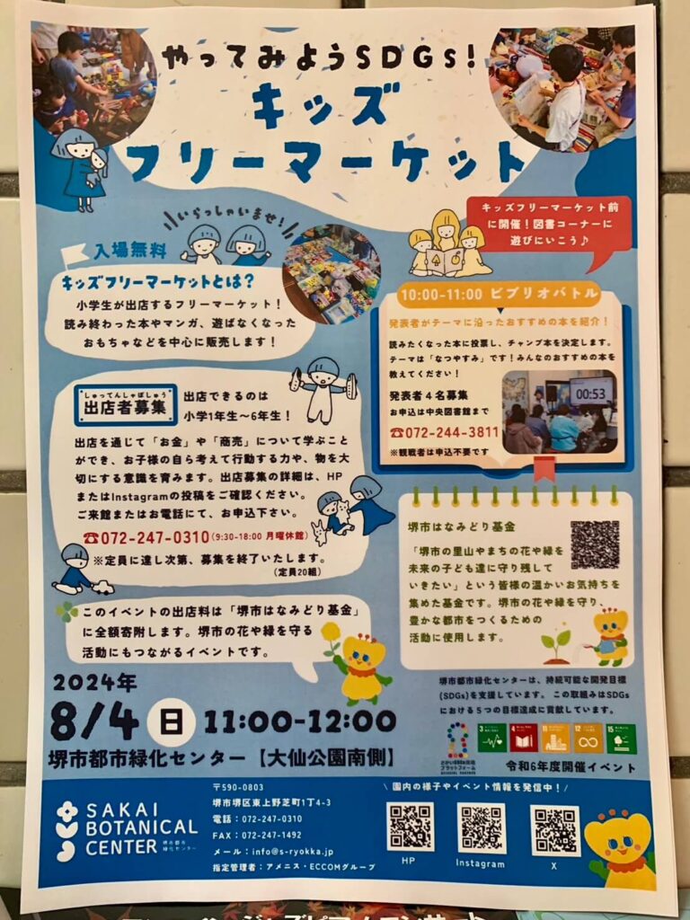 小学生が出店するフリーマーケット『キッズフリーマーケット』が堺市都市緑化センターで開催されます!