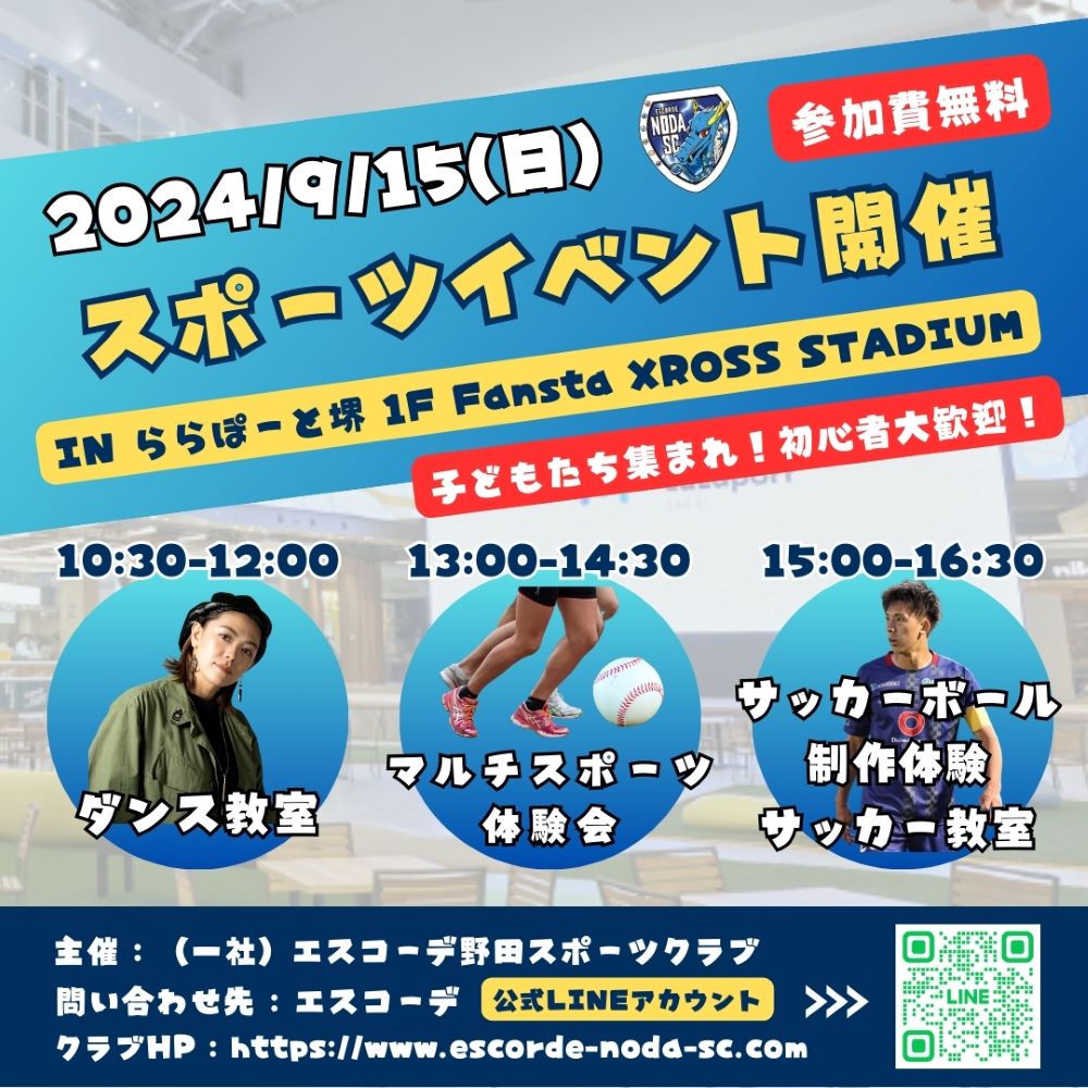 9/15(日)に三井ショッピングパーク ららぽーと堺 1F Fansta XROSS STADIUMで