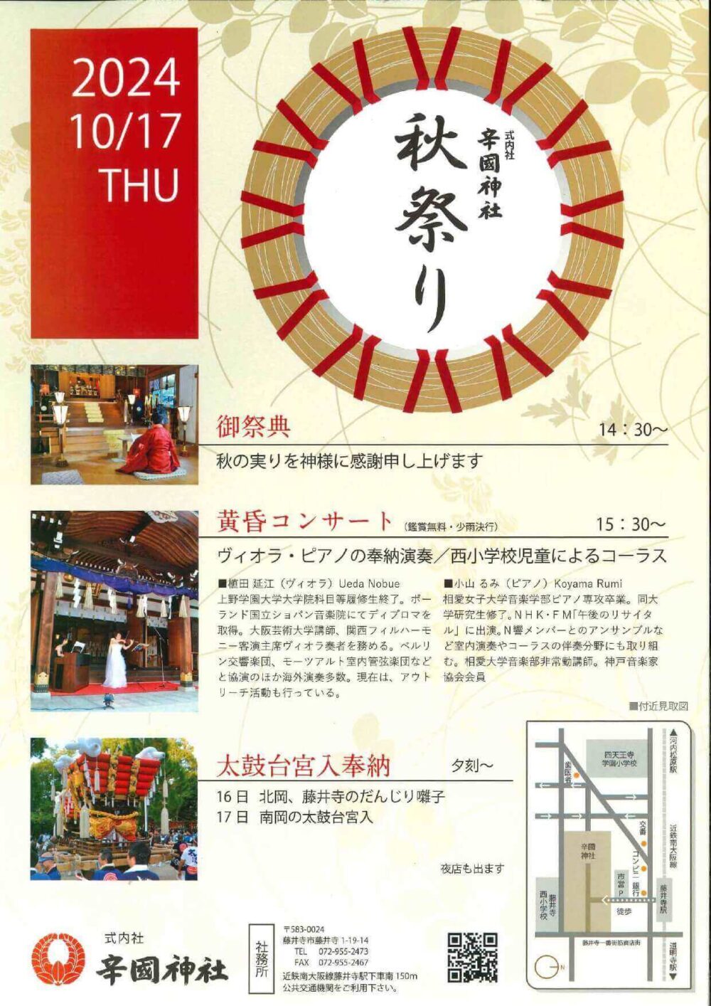 10/17(木)に藤井寺市の辛國神社で秋祭りが開催されます!