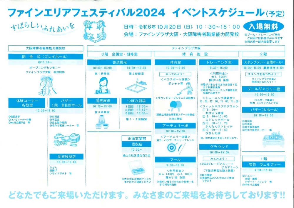 10/20(日)にファインプラザ大阪&大阪障害者職業能力開発校にて、