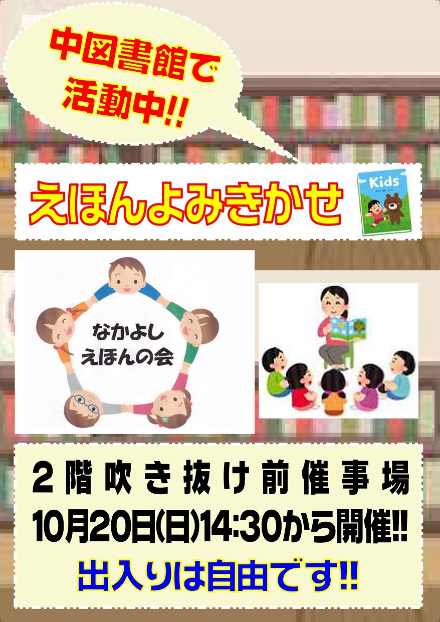 10/20(日)堺市中区のイズミヤSC泉北 2階吹き抜け前催事場で絵本の読み聞かせイベントが開催されます!