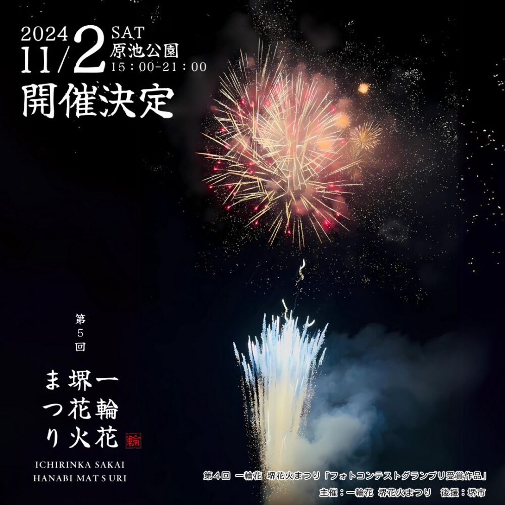堺市の秋を彩る特別イベント「第5回一輪花堺花火まつり」を今年も原池公園で開催しますよ~!!