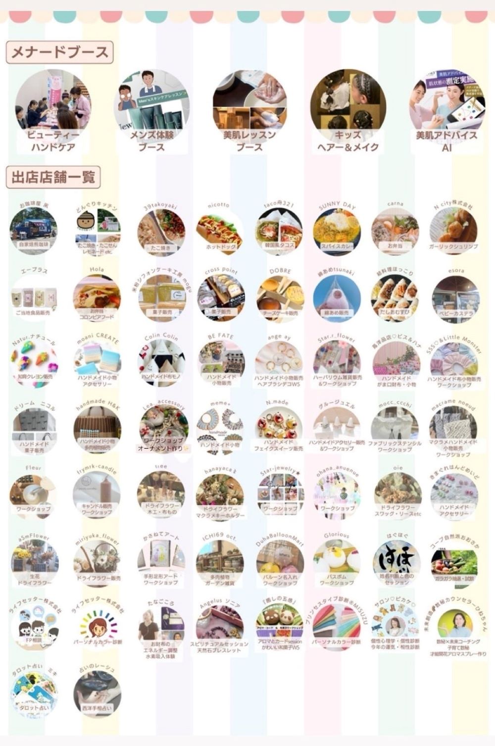 MENARD体験ブース5ブース、キッチンカ―7台、飲食ハンドメイドワークショップ51ブース