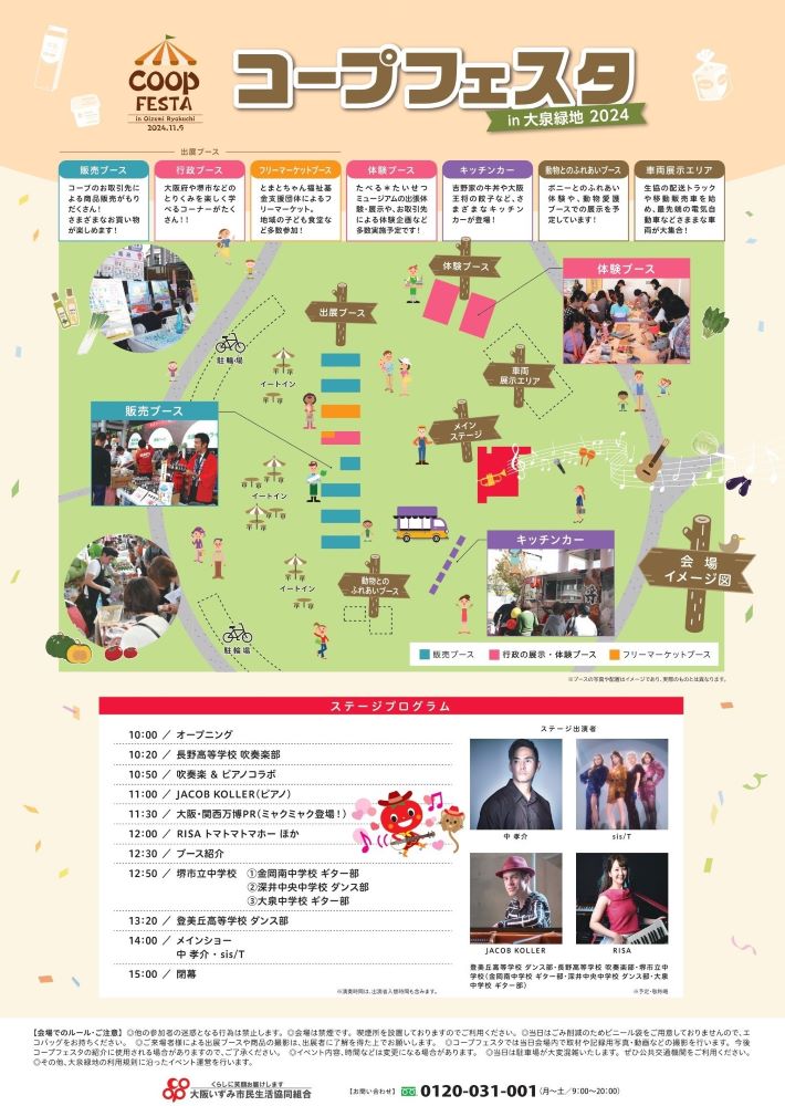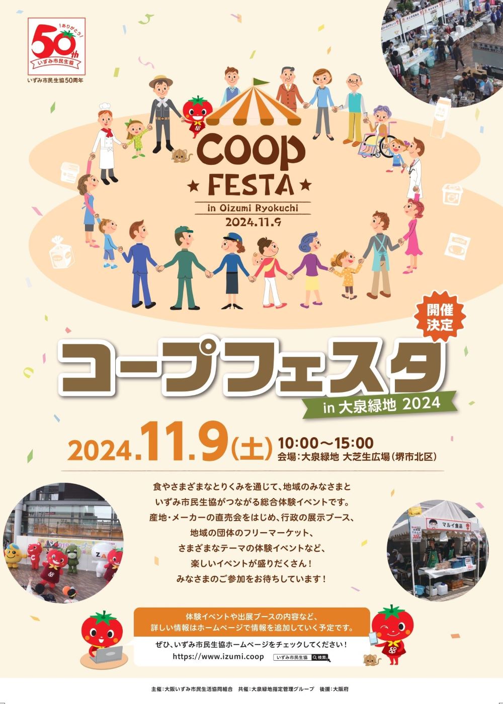 11/9(土)に堺市北区、大泉緑地 大芝生広場にて開催される『コープフェスタ』です♪