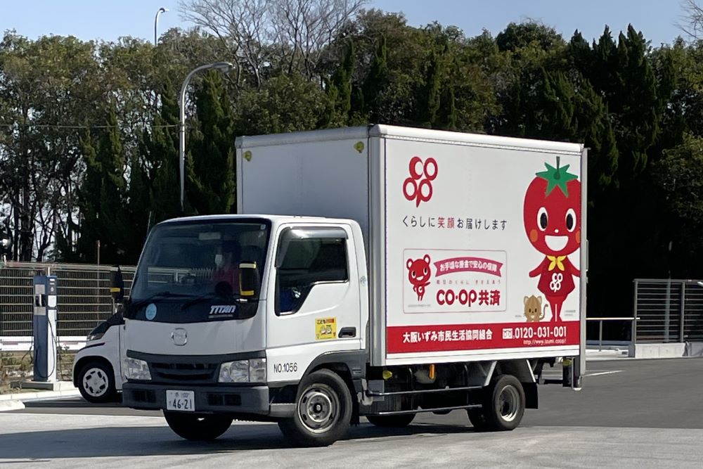 コープの宅配、コープのお買物便、コープのらくらくショッピングカーなど、コープで働く車が大集合☆