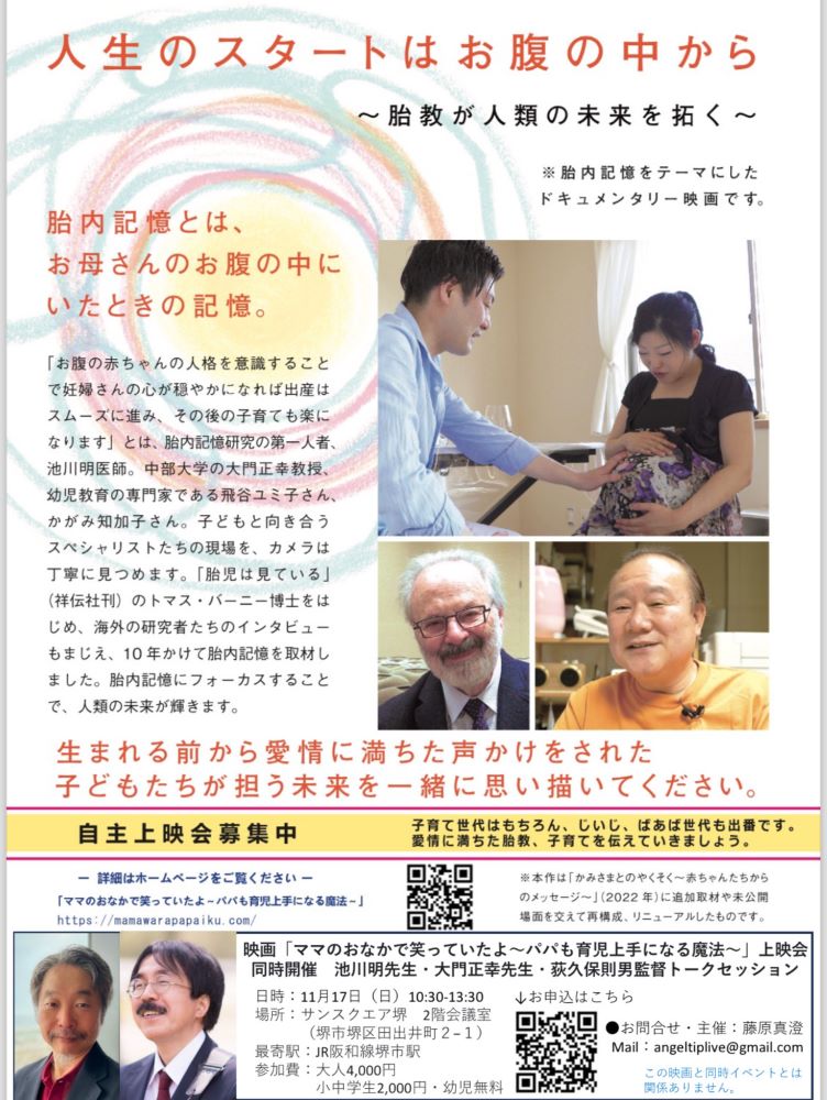 映画『ママのおなかで笑っていたよ~パパも育児上手になる魔法~』の上映会が開催されますよ。