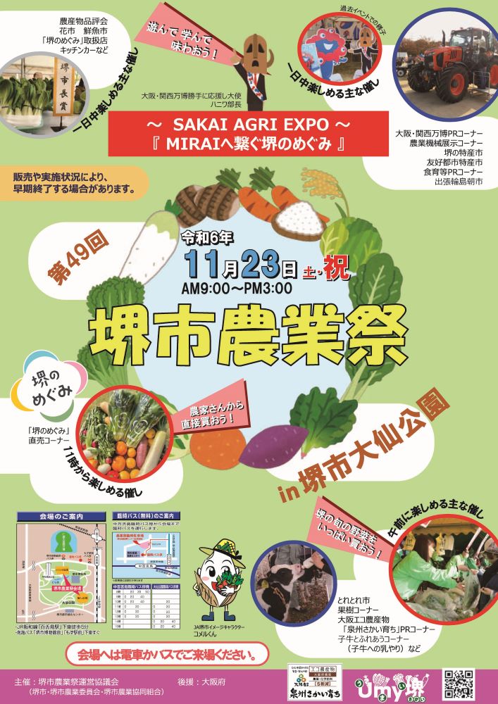 11/23(土・祝)に堺区の大仙公園で第49回堺市農業祭が開催されますよ!!