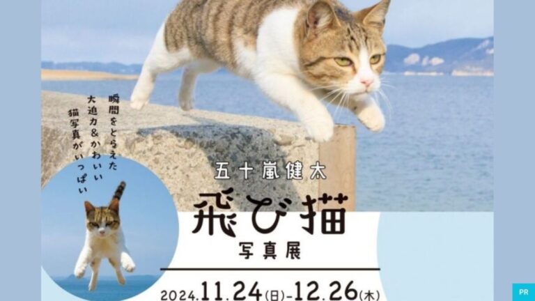 「飛び猫」や「フクとマリモ」などの猫写真で大ブレイクをしたカメラマン、五十嵐健太氏による『五十嵐健太 飛び猫 写真展』がフェニーチェ堺で開催されますよ。