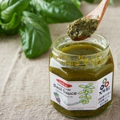 土作りからこだわった自家製バジルをふんだんに使用したバジルソースを販売☆