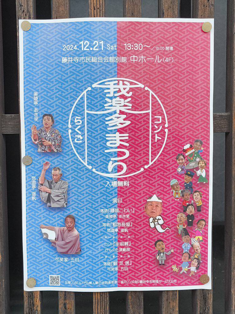 12月21日(土)、藤井寺市民総合会館 別館にて、我楽多まつりの公演があります。