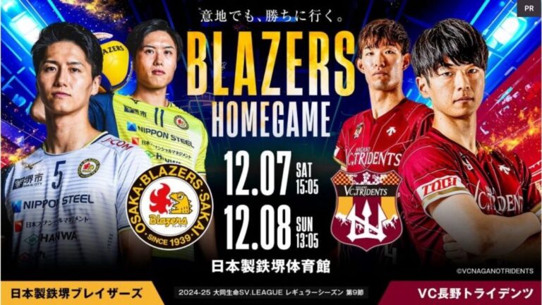 堺を本拠地に活躍する日本製鉄堺ブレイザーズは、バレーボール国内最高峰リーグで活躍するトップチームです!