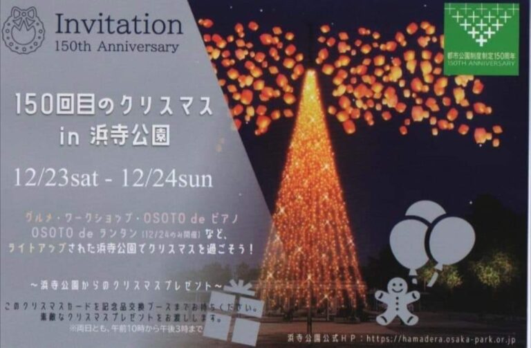 今年で制定150周年の浜寺公園でクリスマスイベント「150回目のクリスマス」が開催されます。