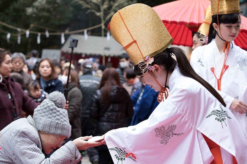 また、福娘による「福餅」の授与もあります!