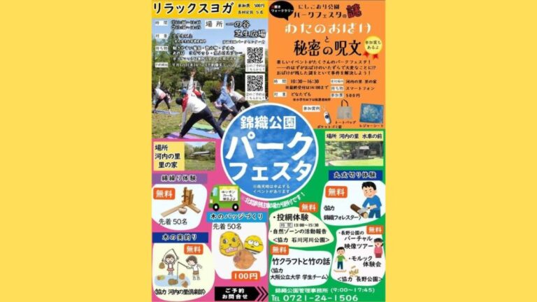 ※わたのワークショップ、ヨガ体験は予約優先、電話・Web(大阪府営錦織公園公式サイト)にて予約受付中。