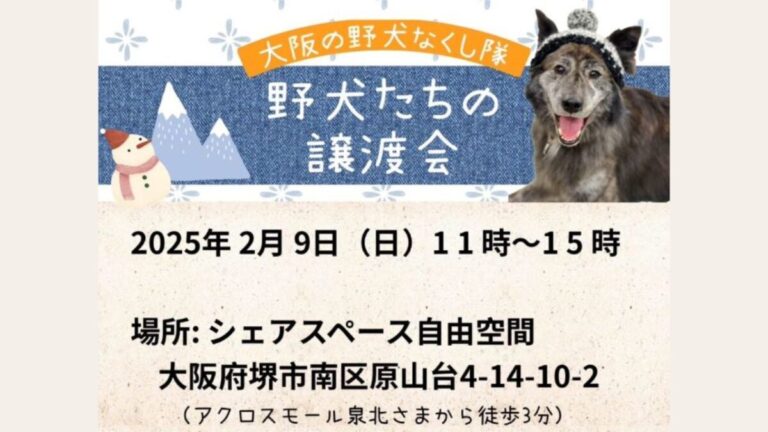 2/9 (日) の11:00〜15:00に堺市南区で「野犬たちの譲渡会」が開催されます。