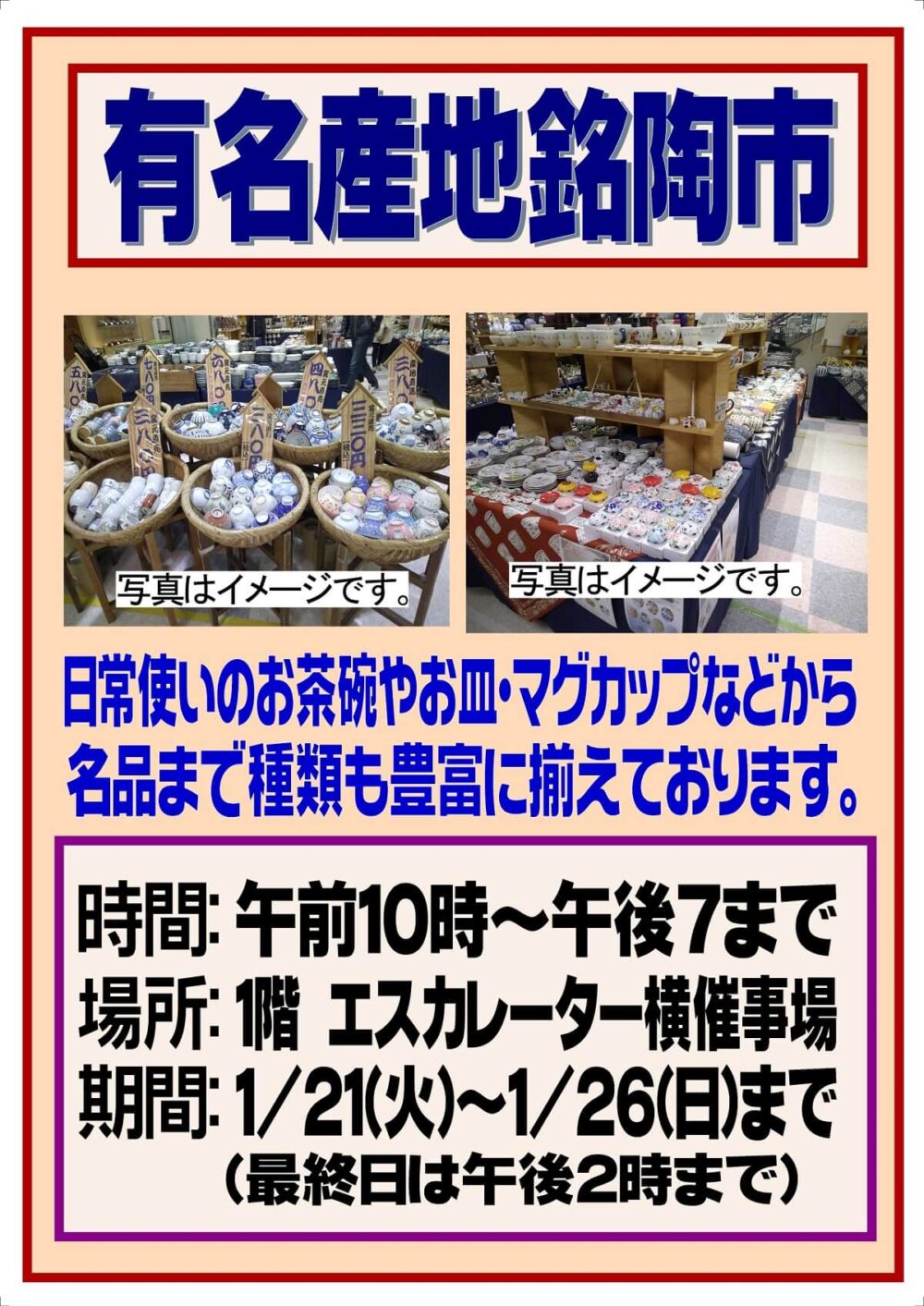 日々の食卓を豊かに彩る器たち。イズミヤショッピングセンタ-松原では、1月21日(火)から26日(日)まで、1階エスカレーター横催事場にて「有名産地銘陶市」を開催いたします。