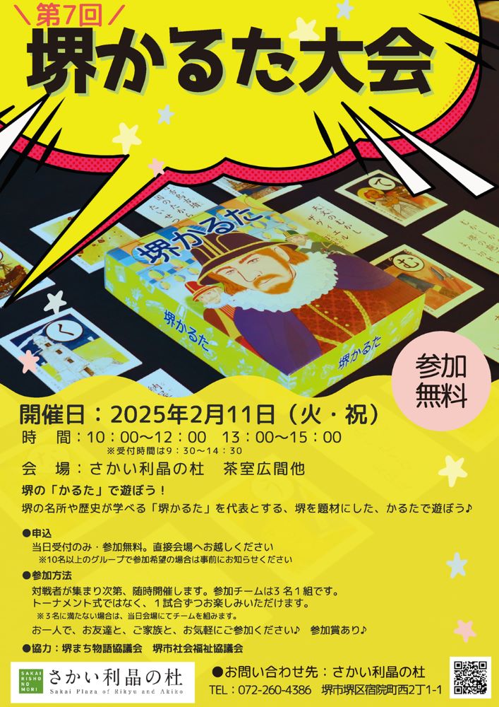 2025年2月11日(火・祝)、堺市堺区にある「さかい利晶の杜」で、毎年大好評の「堺かるた大会」が開催されます!