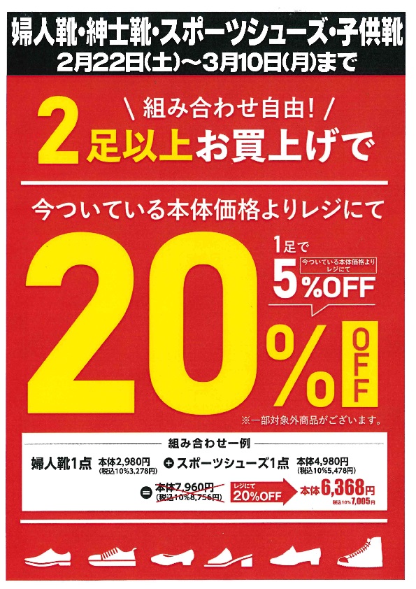 「婦人靴・紳士靴・スポーツシューズ・子供靴」の組み合わせは自由です!!