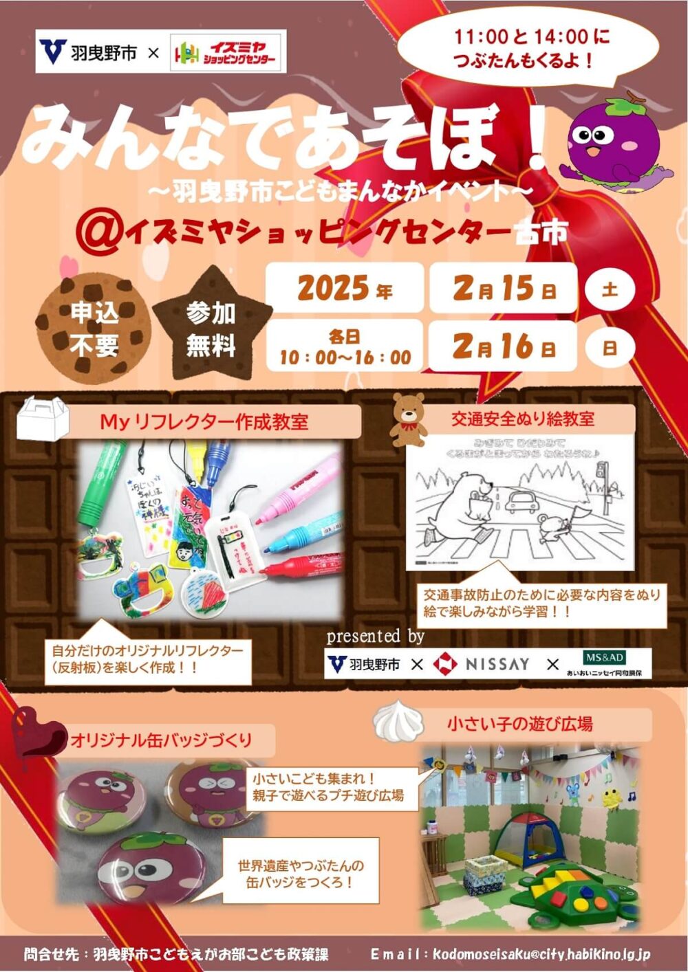 ☆11:00と14:00には「つぶたん」も遊びに来るよ♪
