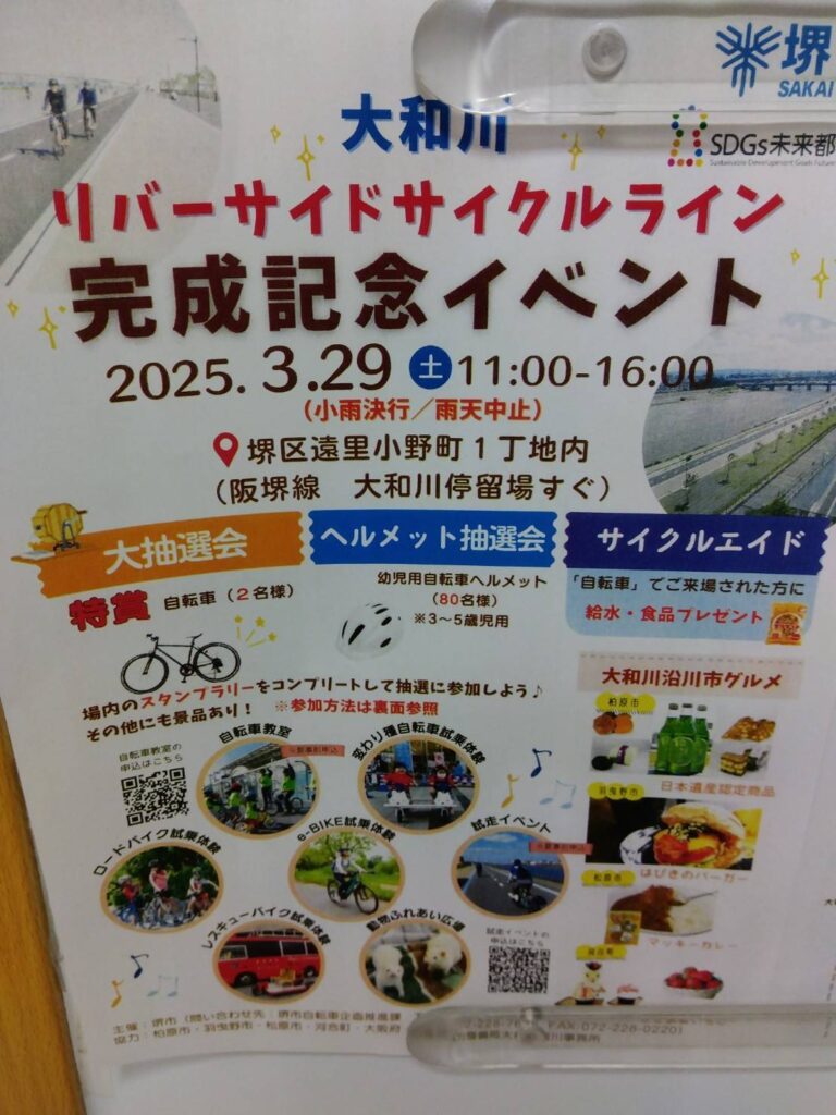 大和川リバーサイドサイクルライン完成記念イベントが開催されます!!