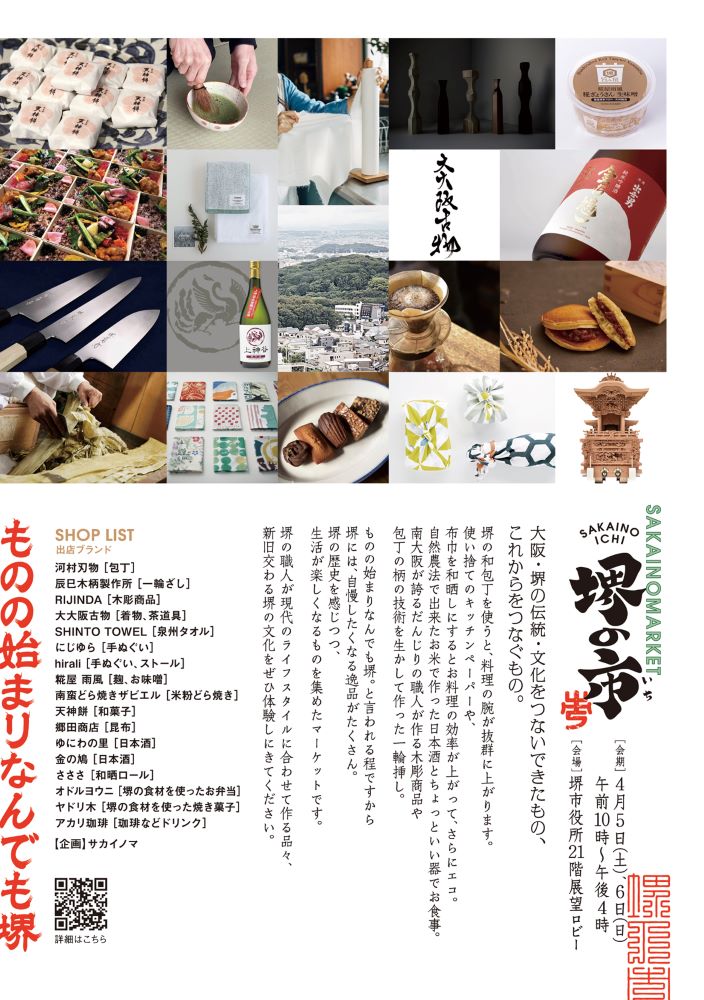 4月5日(土)、6日(日)の2日間、堺市堺区・堺市役所21階展望ロビーにて「堺の市」が開催されます!