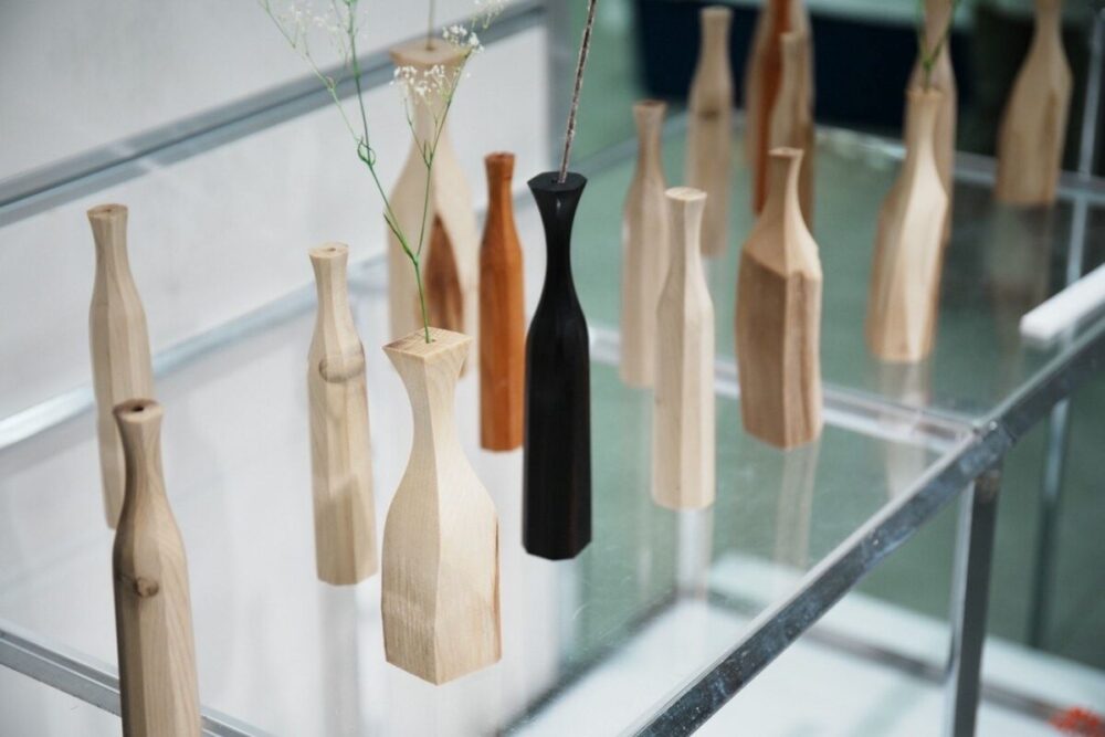 南大阪が誇るだんじりの職人が作る木彫商品や、包丁の柄の技術を生かして作った一輪挿しなど。