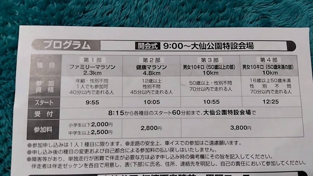 私は第1部のファミリーマラソン(2.3km)に参加しますが、第2部健康マラソン(4.8km)や第3部/第4部男女10キロ もあります!