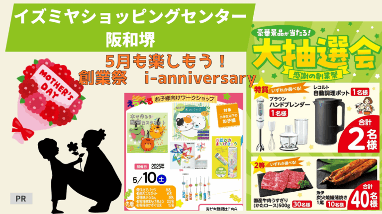 今年のゴールデンウィークは、イズミヤショッピングセンター阪和堺で開催される「創業祭 i-anniversary」がアツい!